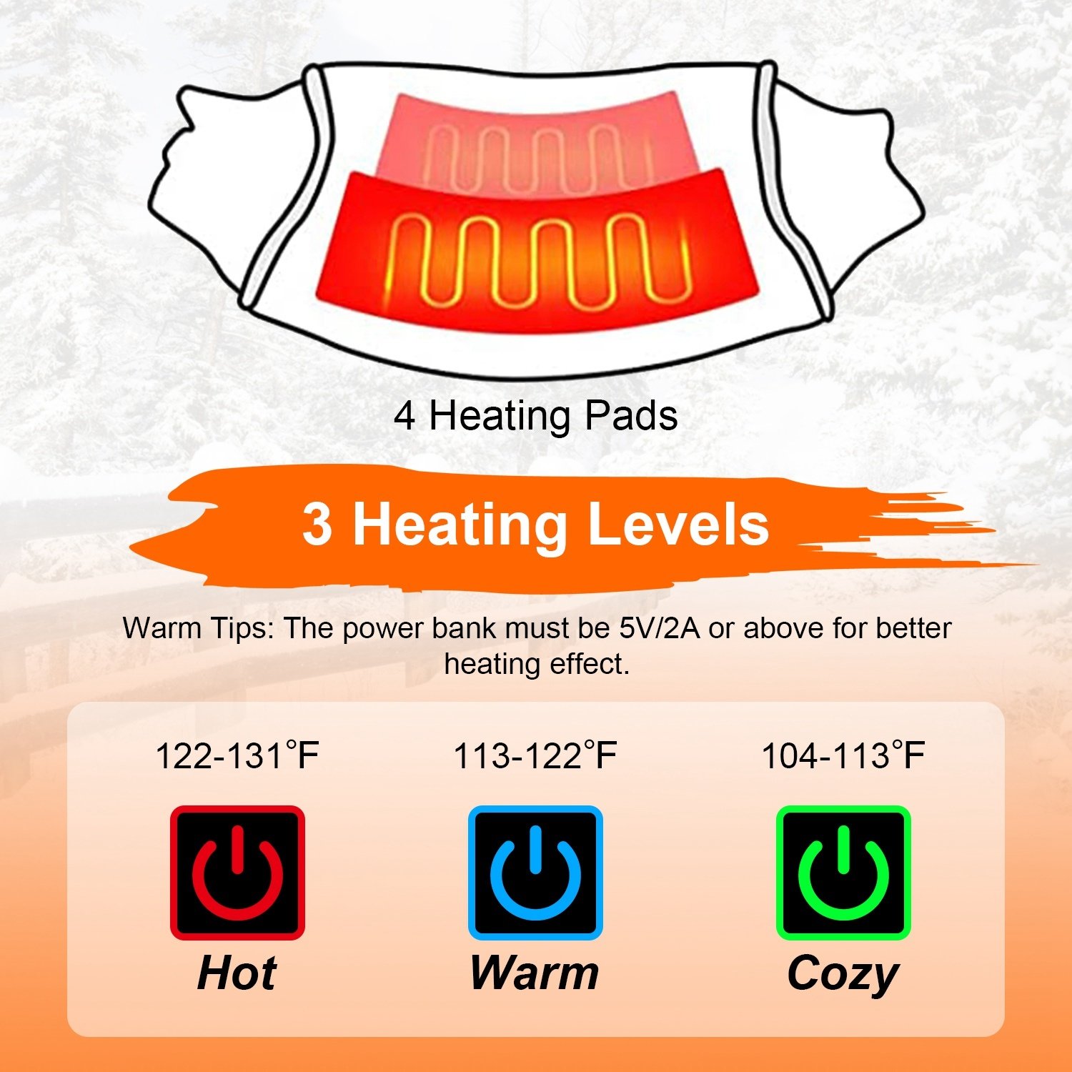 1.Embedded with 4 heating pads and featured with 3 heating levels
