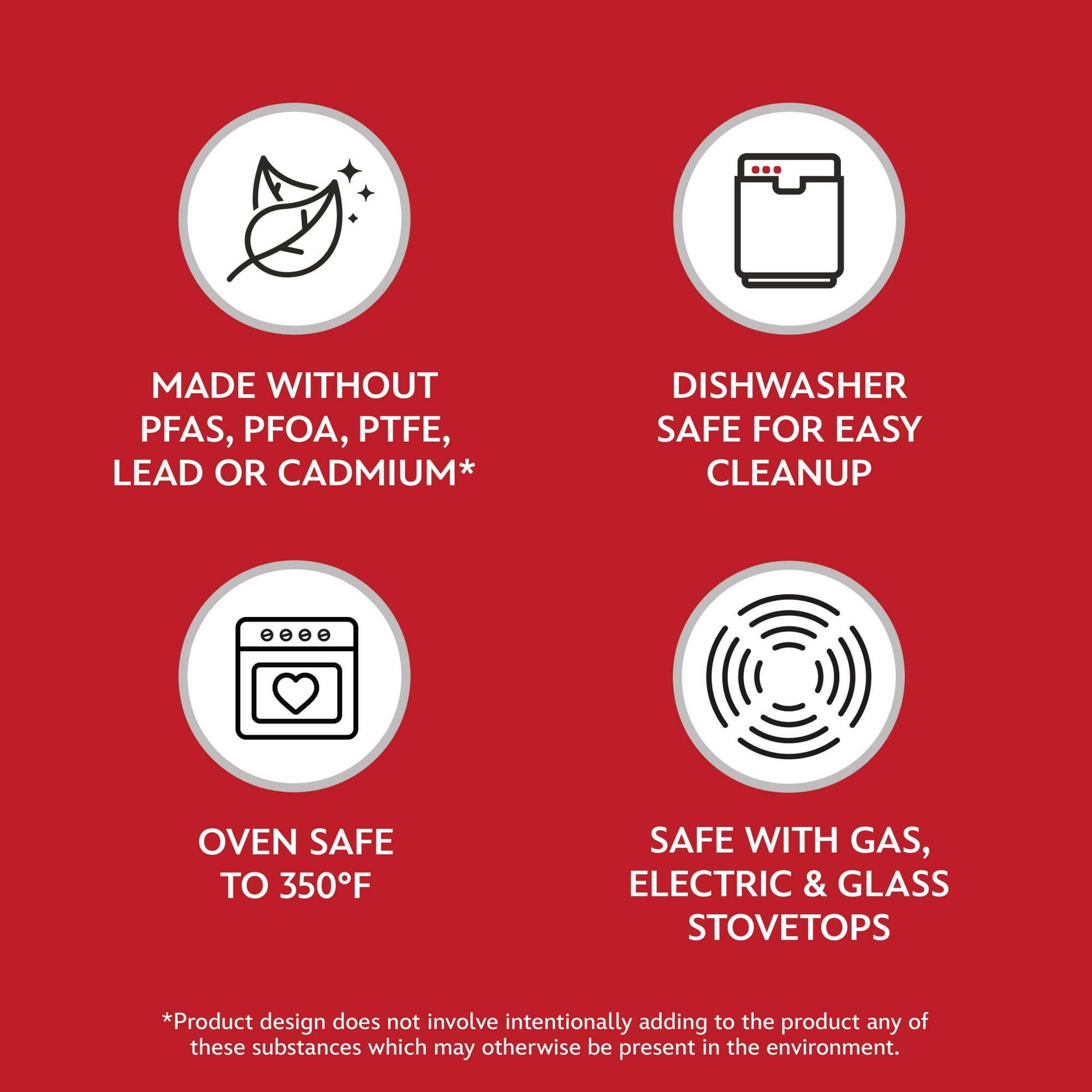 Ceramic nonstick cooking surface is dishwasher safe for easy cleanup