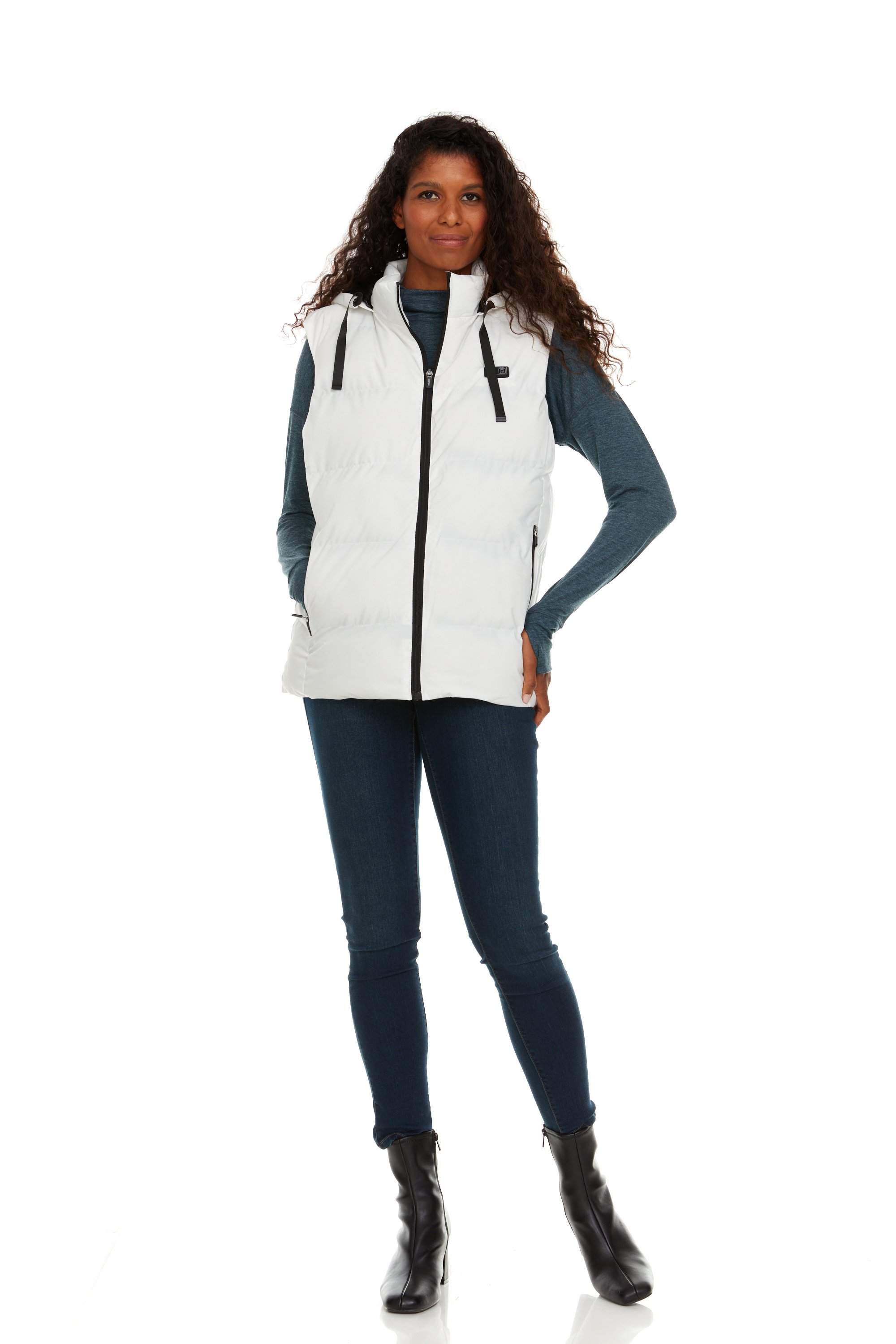 With a detachable hood, the Helios Heated Vest adapts to your needs effortlessly. Wear it with the hood for extra warmth or remove it for a sleek, sophisticated look. The stylish rubber zipper puller adds a touch of flair to your outfit.