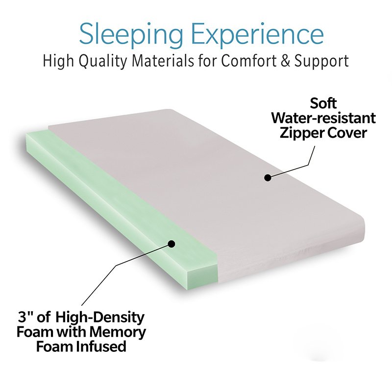 1.High-density foam with memory foam infused provides sturdy support and comfort for restful sleep in any setting.