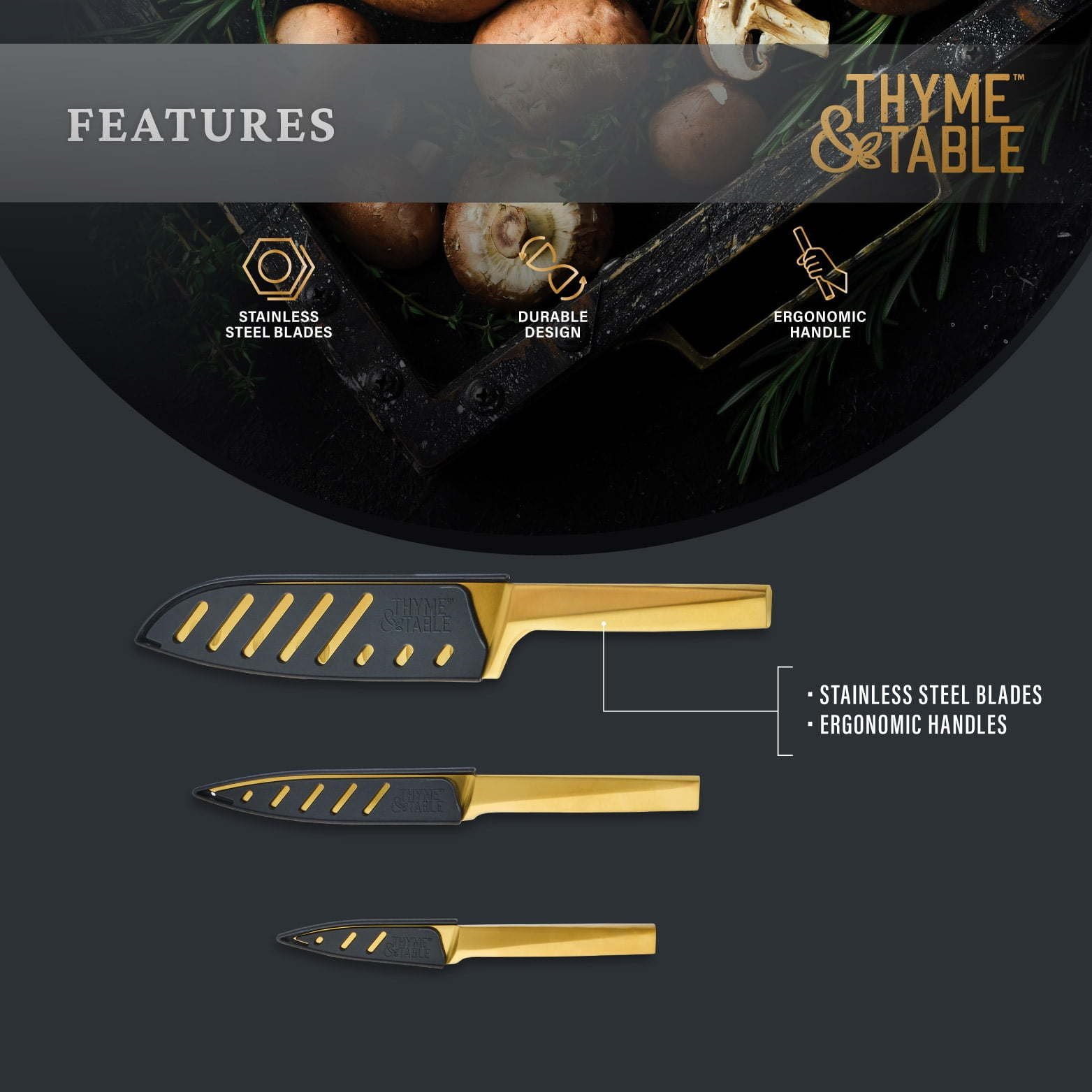Thyme & Table 3-Piece Gold Knife Set with Protective Sheaths
