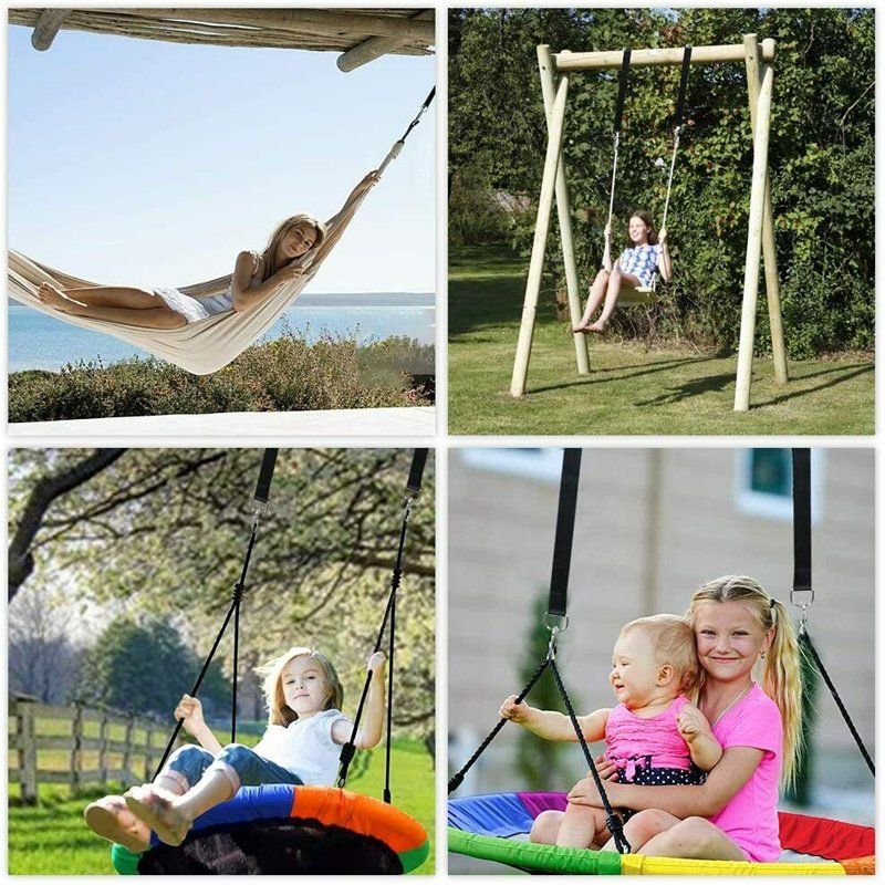 STRONG & SAFE: The swing hanging straps adopt high-density nylon,to withstand harsh winters and brutal summers.The D-rings and carainer hooks are made of premium stainless steel. Holds up to 500kg/1102lbs.